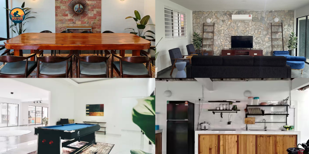 Dengan 6 bilik tidur yang selesa dan 7 bilik air, semua tetamu mendapat ruang yang mencukupi tanpa perlu berebut-rebut. Bilik-bilik tersebut disusun rapi dan dilengkapi kemudahan asas yang memuaskan. Saya peribadi sangat tertarik dengan suasana ruang tamu bersama yang luas, membolehkan semua ahli rombongan berhimpun dan berbual tanpa rasa sempit.